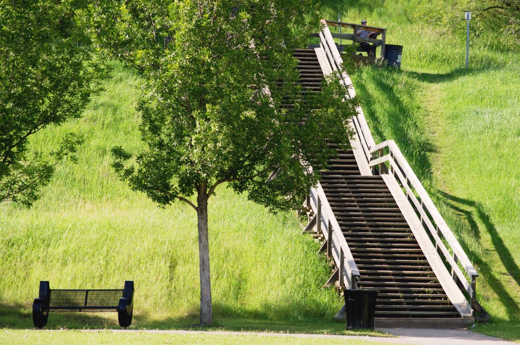 The city is flat for the most part but there are also hilly areas here and there. The riverside park has many of these wooden stairs where people could walk up and down, rest if they must, or do some cardio exercises.