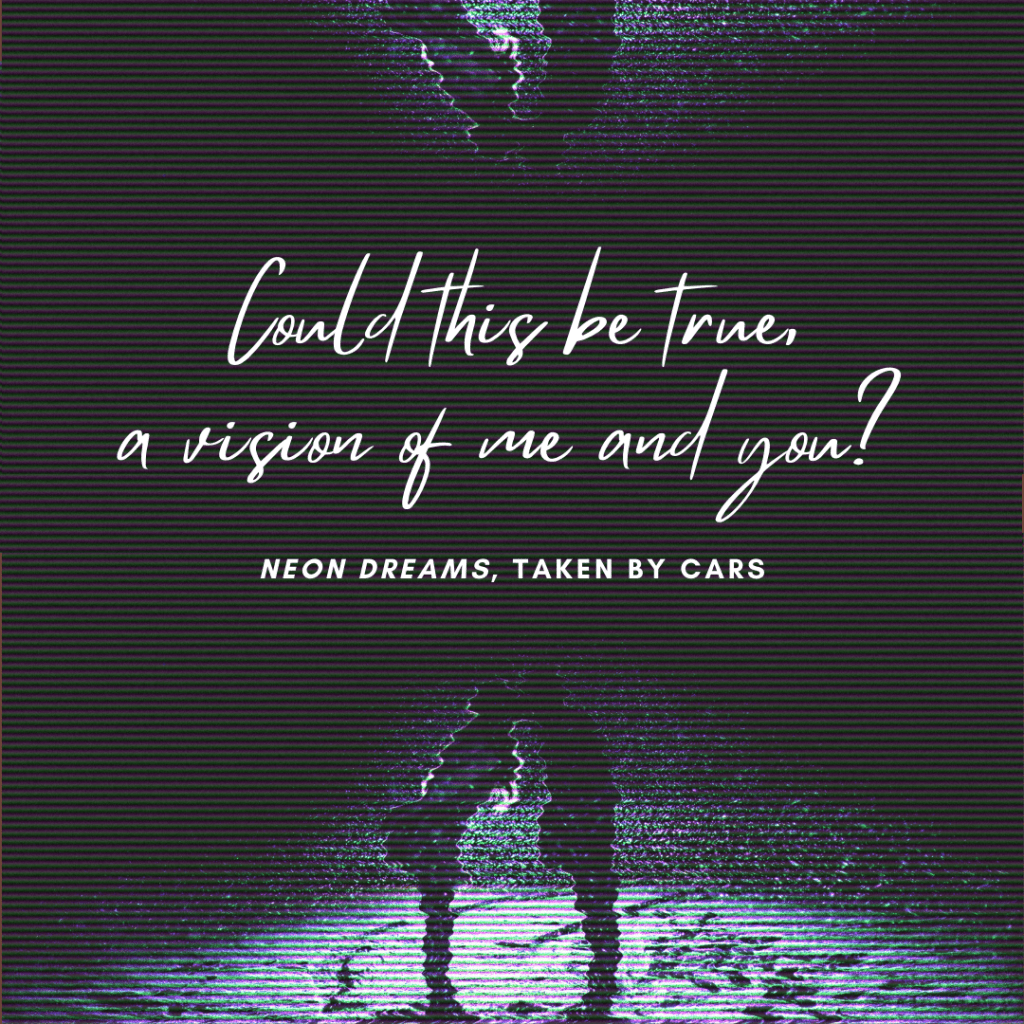 Can anyone please point me to where I can find the complete lyrics of Taken by Cars’ “Neon Dreams”? This song has been one of my favorite songs in recent years and I want to be able to sing along to it in full.
