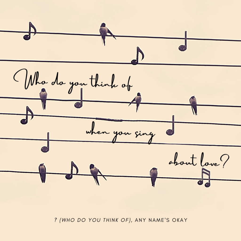 “? (Who Do You Think Of)” by Any Name’s Okay is a beautiful song about pining for someone. It poses other beautiful questions like, “who do the midnight stars remind you of?” and “what goes on in your chest / that weighs down on your breath?”