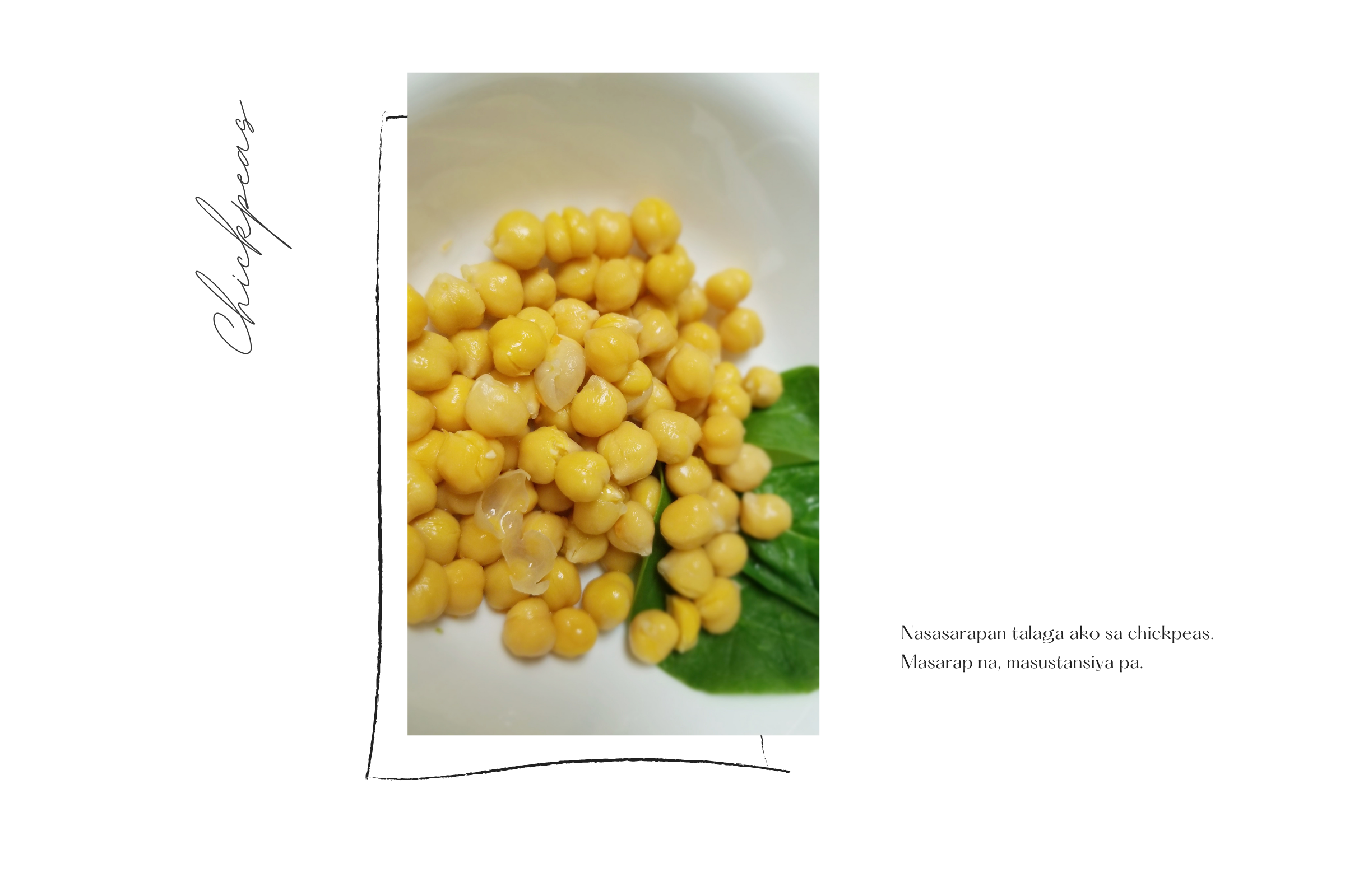 ANG STAR ng mga putaheng kinain ko ngayong araw ay chickpeas o garbanzos. Sinusubukan ko kasing kumain ng mas maraming beans at legumes, lalo na ngayong medyo bitin ako sa protina.