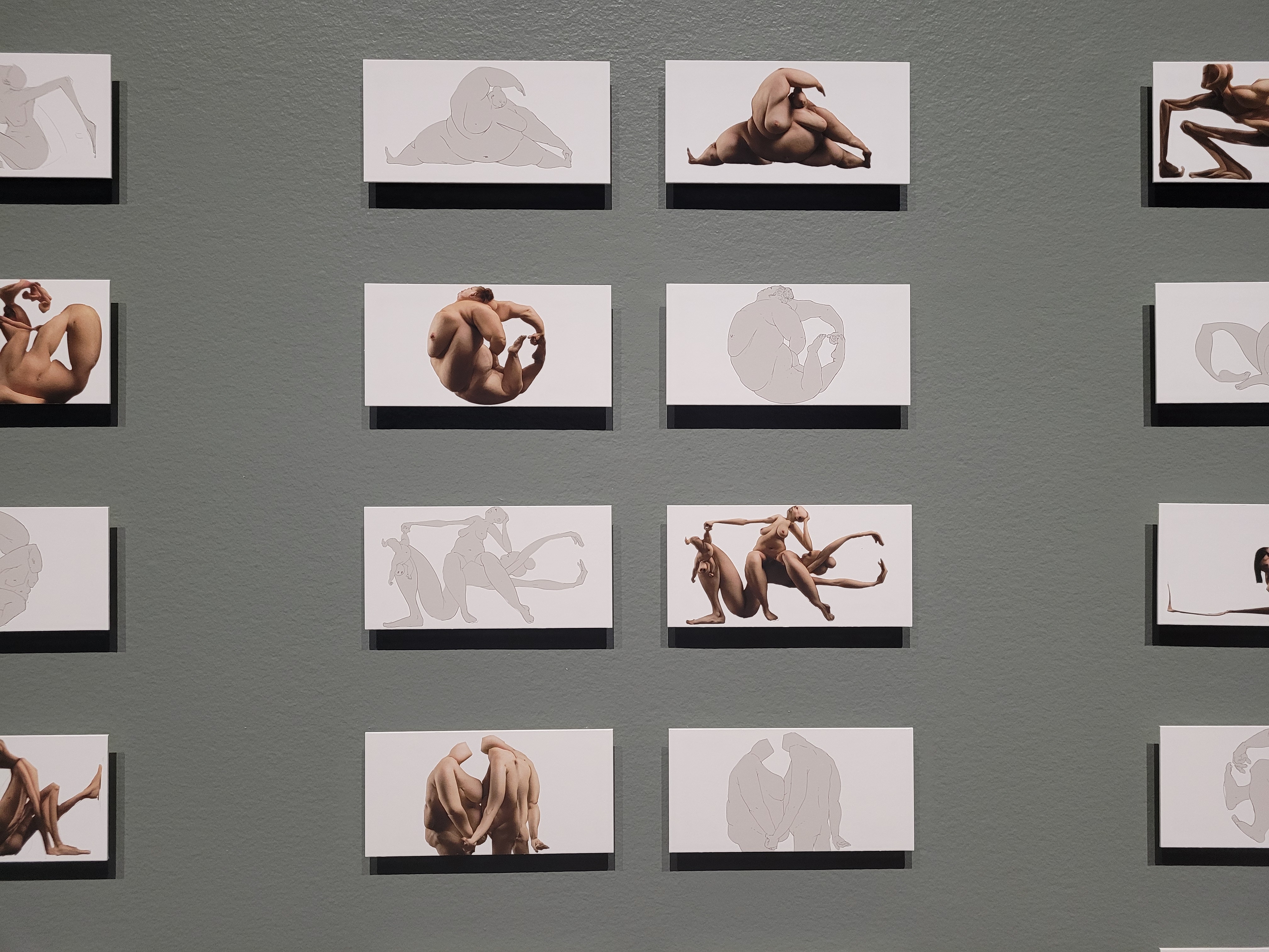 I also liked Scott Eaton’s Caffeinated Diversions, a collection for another exhibit in the gallery. Eaton taught neural networks how to draw using photos of human bodies in various positions. He then drew basic line drawings and fed them to the neural networks who completed the sketches based on their training. I found it very clever. I wish I had the time and luxury to explore ideas like this.