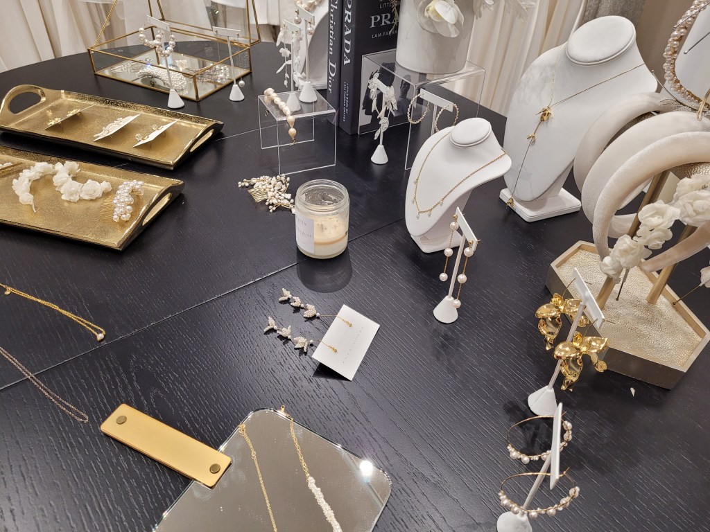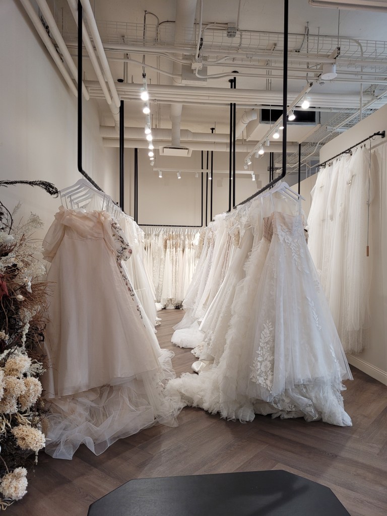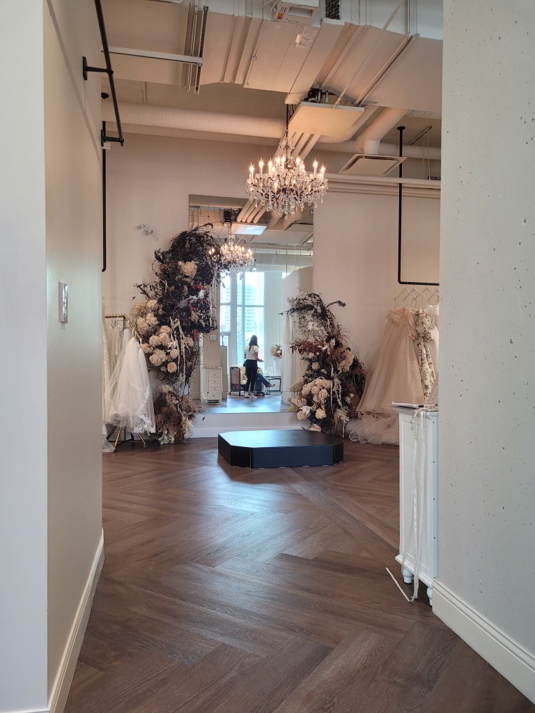 The moment I entered the wedding boutique, I knew right away that Pinterest threw up all over it. Fake flowers, crystal chandeliers, line art in thin gold frames — my hipster self couldn’t even.