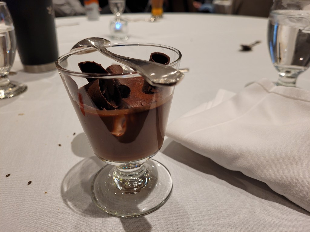 My friends and I also joined a hackathon of sorts last month. We didn’t win, but we got invited to a fancy dinner at a fancy exclusive club, and the only photo I got was of the chocolate mousse dessert that I didn’t even finish. It was a little too much chocolate for me.